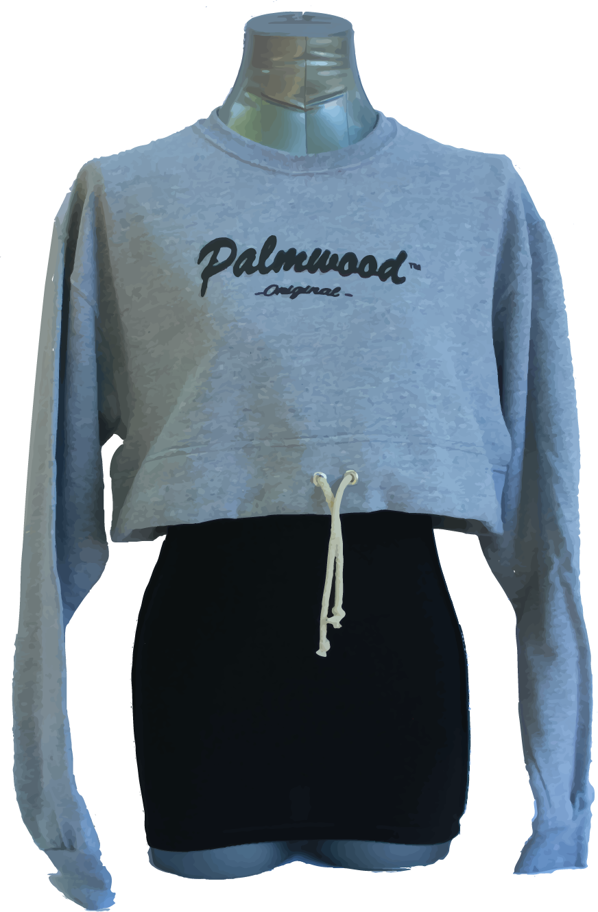 This sweatshirt has a high crop-line and draw string with a suede printed Palmwood logo.